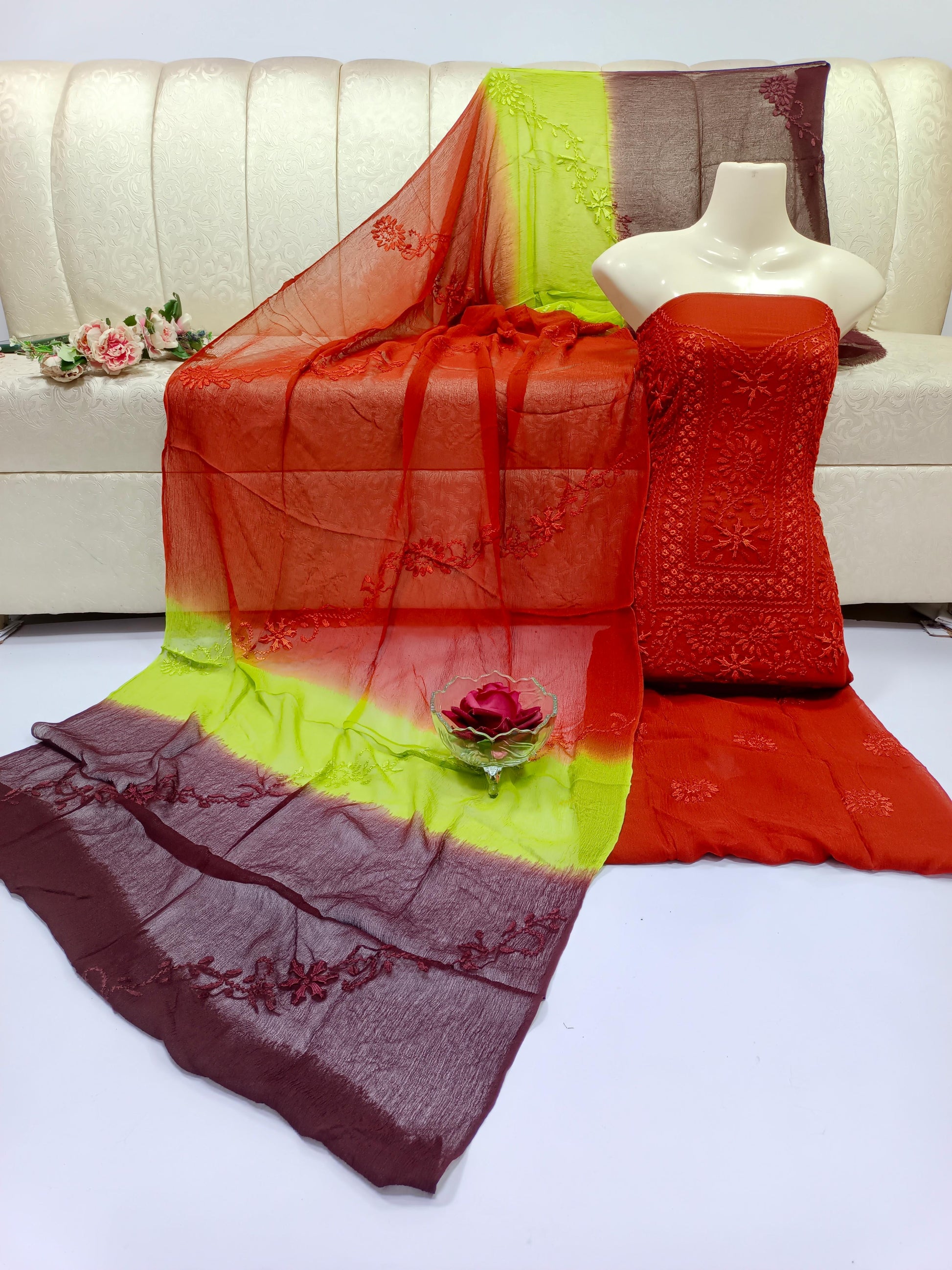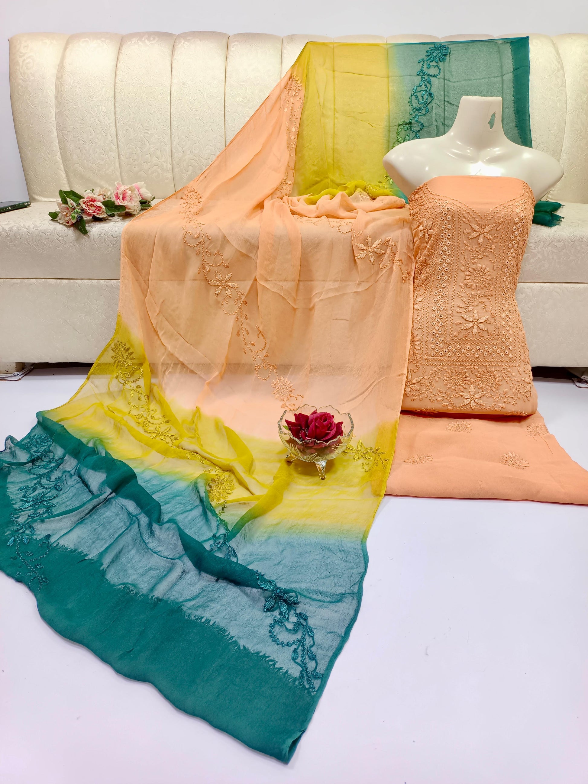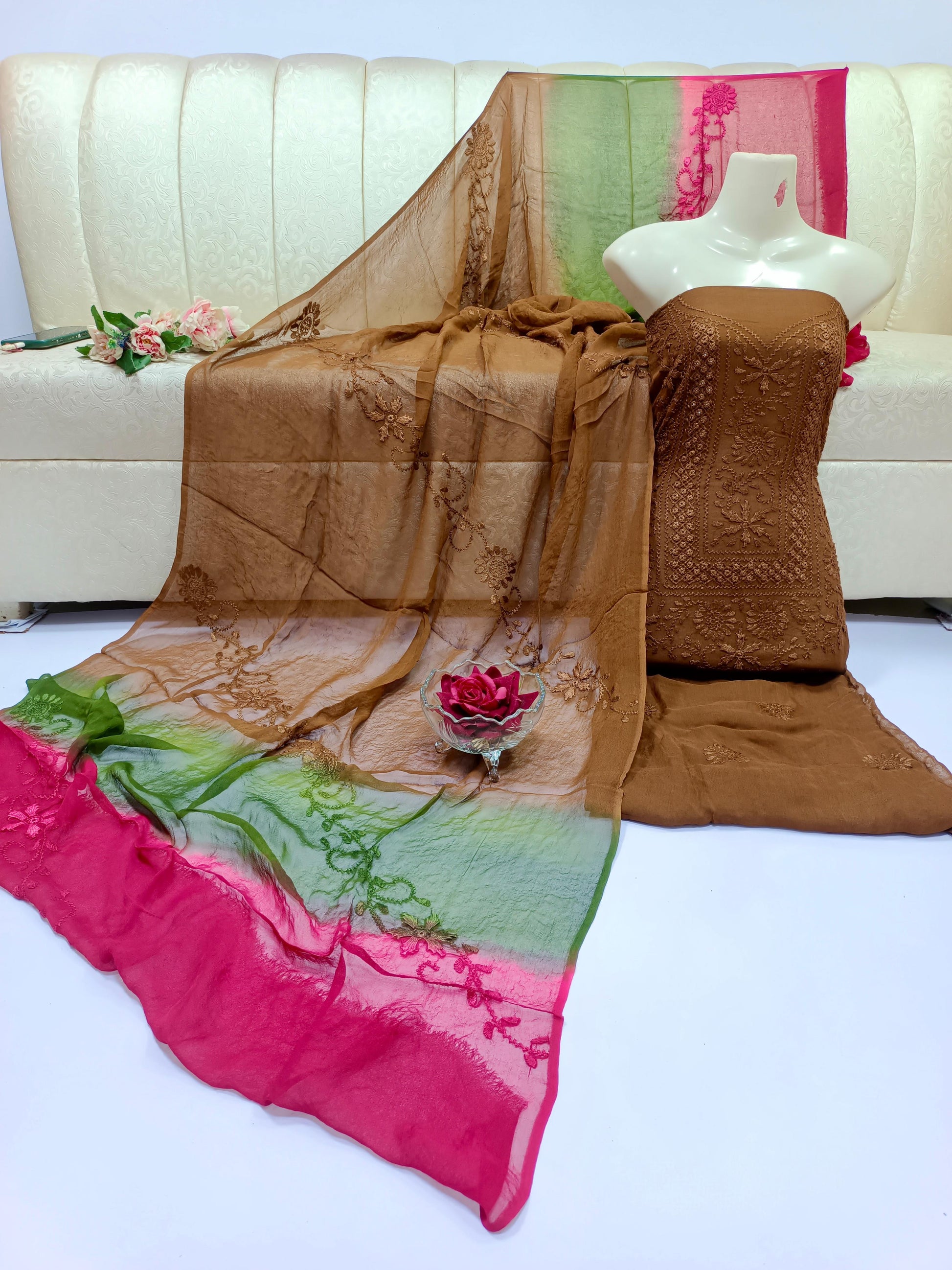 2pc Paka Shesha Work Embroidered Dress (Shirt & Dupatta)