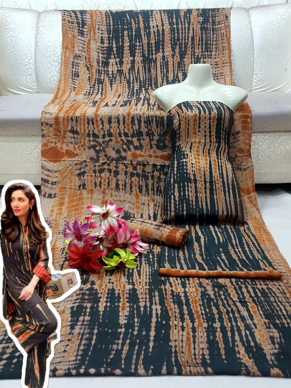 3pc suit (shirt, dupatta with separate trouser & sleeves)
